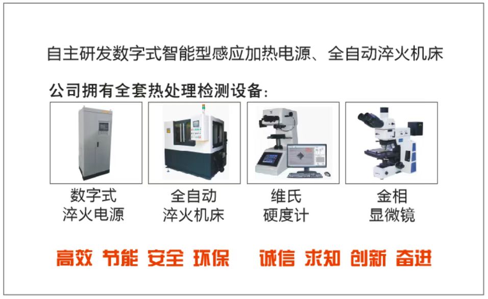 我們擁有“全自動淬火設備”多套,例如:全自動臥式淬火機床,立式數(shù)控淬火機床,齒輪專用淬火機床;高頻機類型:電子管機100KW 250KHZ,電子管機60KW 150KHZ,電子管30KW 450KHZ,固態(tài)機超音頻120KW 20 35KHZ,固態(tài)中頻機160KW 1-5KHZ,固態(tài)超音頻25KW 80KHZ,超高頻固態(tài)MOS機60KW 600KHZ,回火爐、正火爐以及全套金相檢測設備等,主要針對高品質的五金件高頻加工,工件圖紙什么要求,我們就什么性能的機來做,保證品質。 淬火品質較高,微型件和細長件類、開口銷類等變形量遠遠低于傳統(tǒng)淬火加工,有無中心孔都可??梢試栏癜凑請D紙要求完成淬火加工。