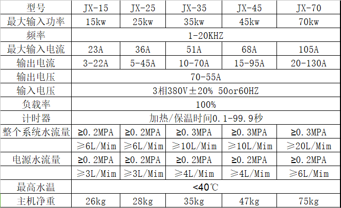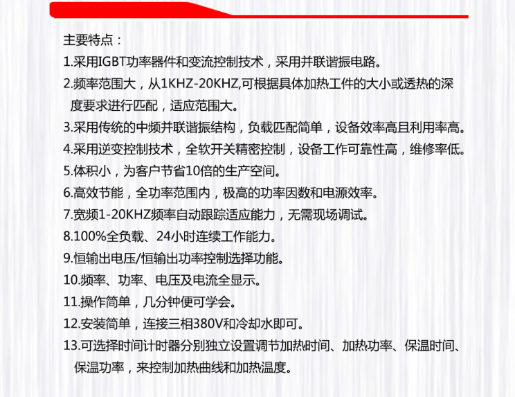 中頻感應(yīng)加熱技術(shù)參數(shù):