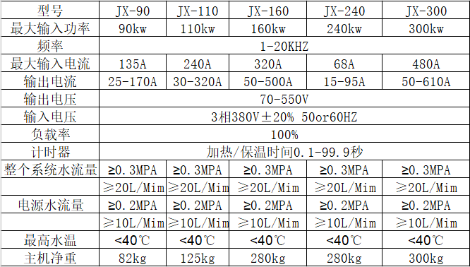 中頻感應(yīng)加熱技術(shù)參數(shù):